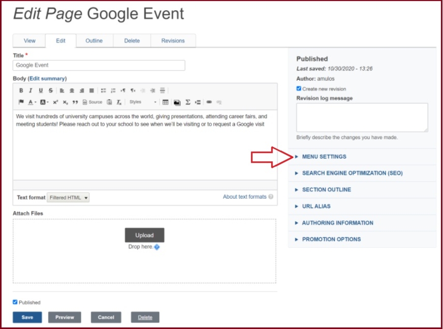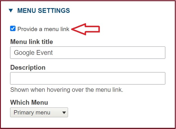 3. Check the box: Provide a Menu Link