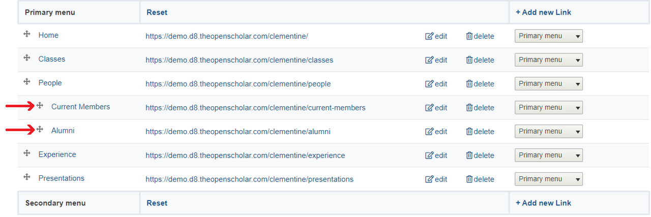 2. Drag the new link to the right & under the link you want it to dropdown from