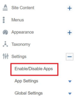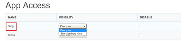 To modify the Public/Private setting, go to the Control Panel, click on Settings, then click on the Enable/Disable Apps button and a list of available apps will be displayed. You can edit the apps public/private status by selecting "Everyone" or "Site Members Only" from the corresponding drop-down menu.