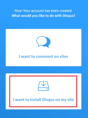 3. Then, click on "I Want to Install Disqus on my site" option.