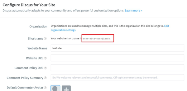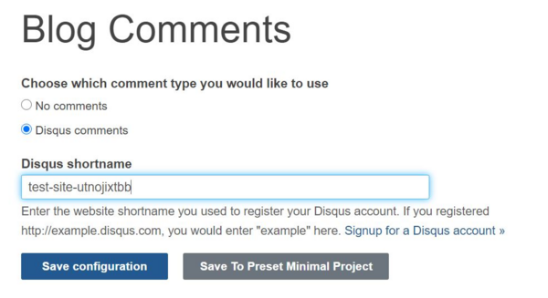 2. Select the option "Disqus Comments" and enter the Disqus short name in the given tab.