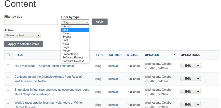 6. Go to Content in the control panel and the first entries will be your newly imported blog posts.