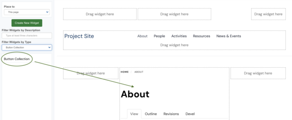 The Button Collection Widget displays a series of links styled as buttons with icons. You can use it to build visually appealing lists of links that link to other pages in your site or to external sites.