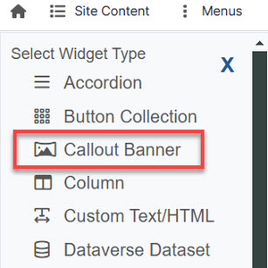 The Callout Banner Widget displays a headline and optional description text in a large, attention-getting banner. You can add an image in the background or on the side, and it can have a button linking to another page or a search box to search for more content that the viewer might be interested in. It can also be used in place of the regular page title if you want to add a striking visual at the top of your page.