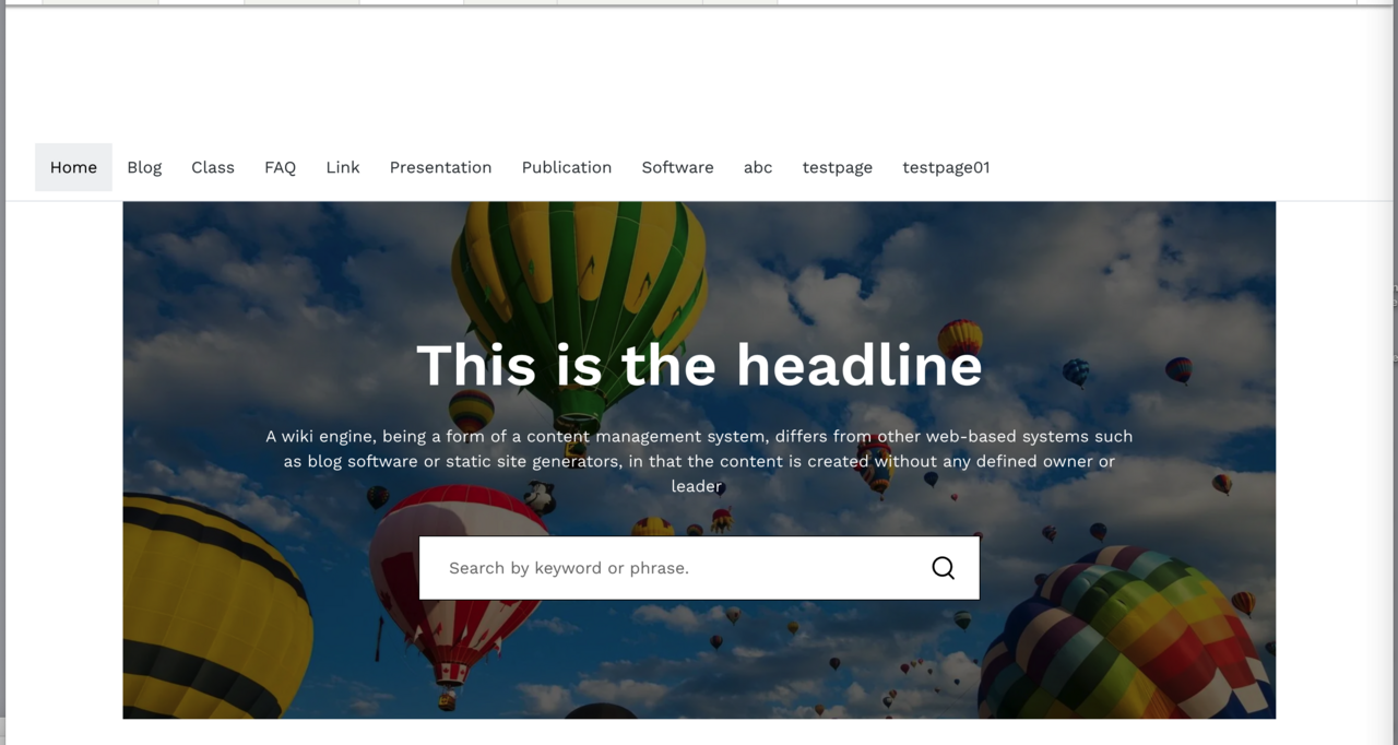- If you select "Search box," the user will see an input field for search keywords. It allows them to search all the OpenScholar sites at your institution. In the future, we plan to add an option to restrict the search to your own site.