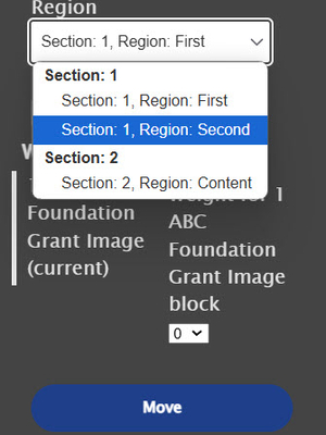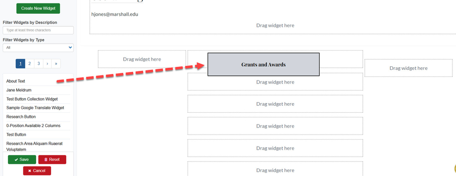 Content widgets can be moved around by dragging from one location to another within the same section OR to another section.
