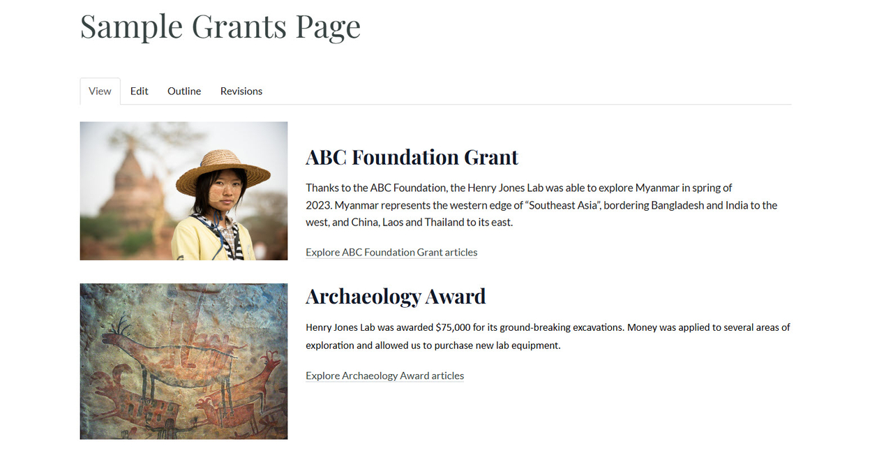 Here is an example of a web page containing 2 columns. Each column contains a Custom Text/HTML Widget.