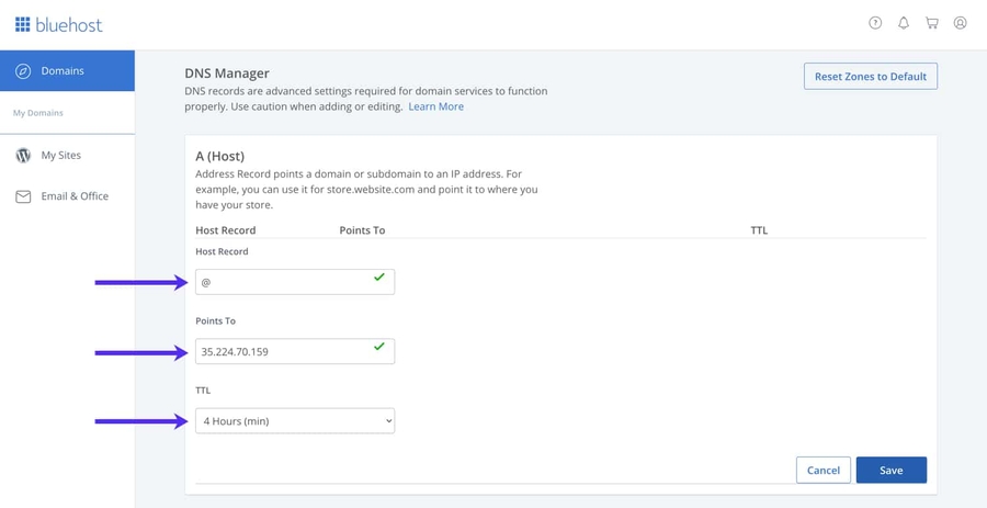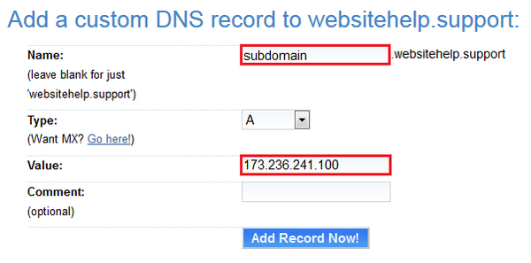 If you need help adding A Records, please refer to the information below.