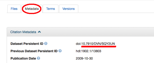 Go to a Citation Metadata on the Dataset Page to find the link (see example below)