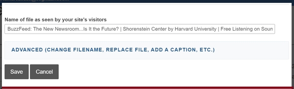 d) Update the file name and add a description if you choose to. Click Save. Then click Insert.