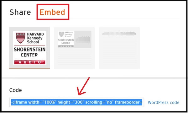 2. Since SoundCloud is one of the providers available in the list, you can copy either the URL or the embed code.
