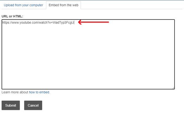 Note : If the source is from one of the providers listed on embedly, then you can enter either the URL or iframe code. If the source is not listed on embedly, you can only use iframe code.