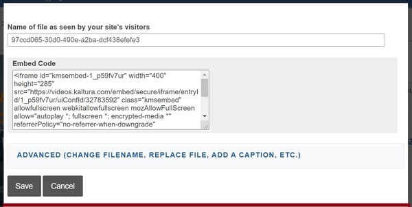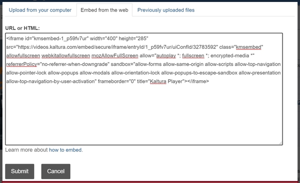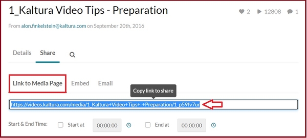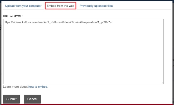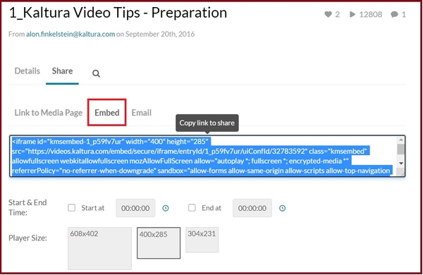 2. Since Kaltura is one of the providers available in the list, you can copy either the URL or the embed code.