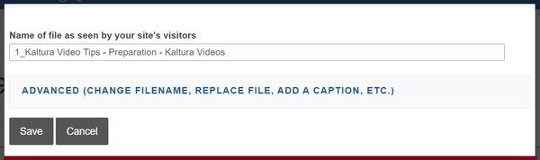 d) Update the file name and add a description if you choose to. Click Save. Then click Insert.