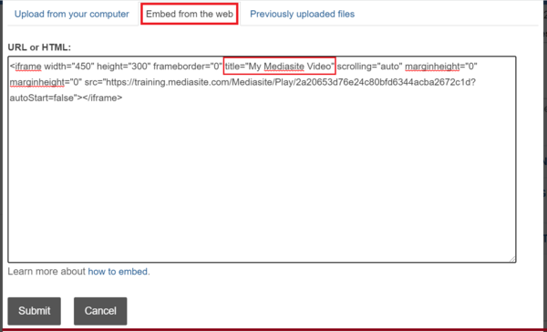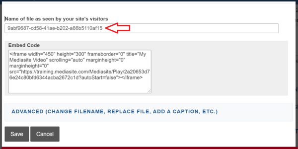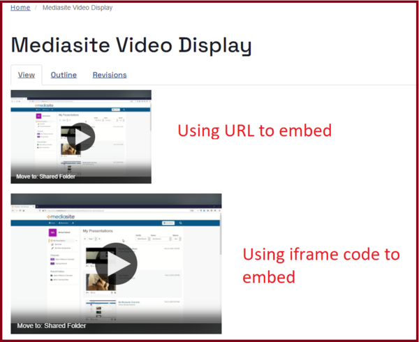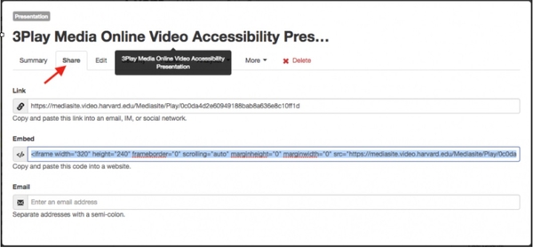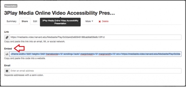 b) Using embed code - Click and copy the Embed Code of the Mediasite video.