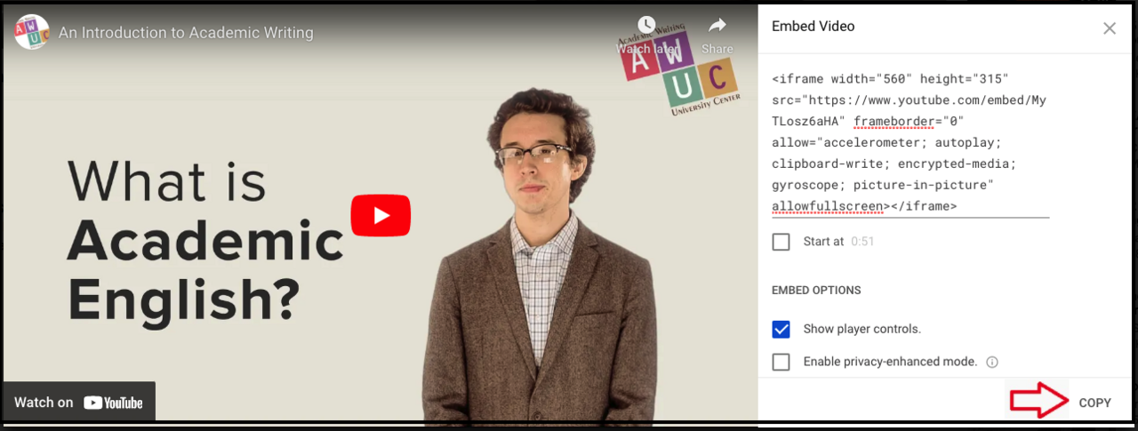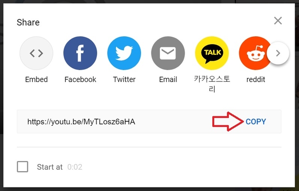 2. Since YouTube is one of the providers available in the list, you can copy either the URL or the embed code.