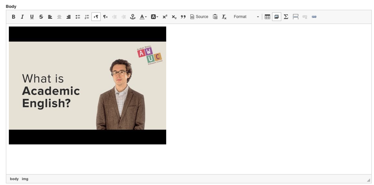 7. At the bottom of the content editor, click "Save" to apply the changes. Your video will now be embedded in your content.