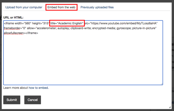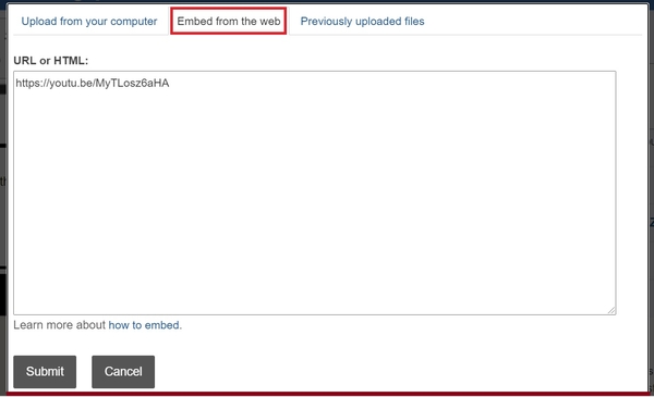 5. A pop up form will appear. At the top select the "Embed from the Web" tab.