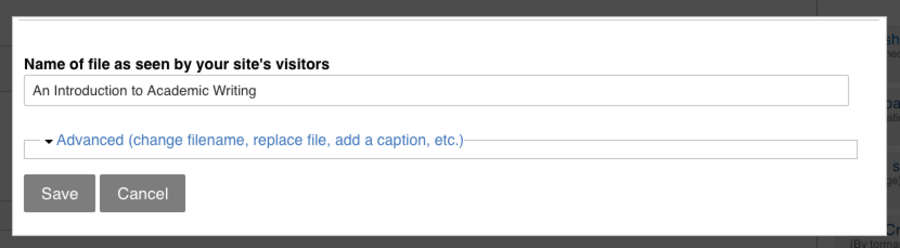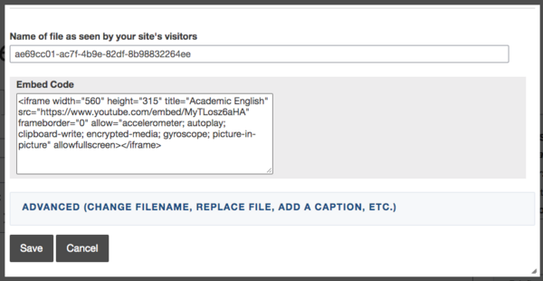 d) Update the file name and add a description if you choose to. Click Save. Then click Insert.