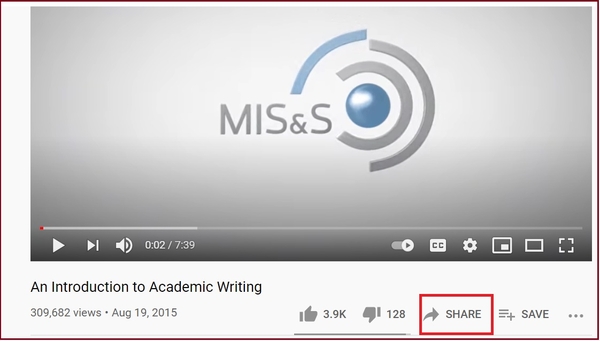 1. Click on the Share button (just below the YouTube video) you want to include on your page.