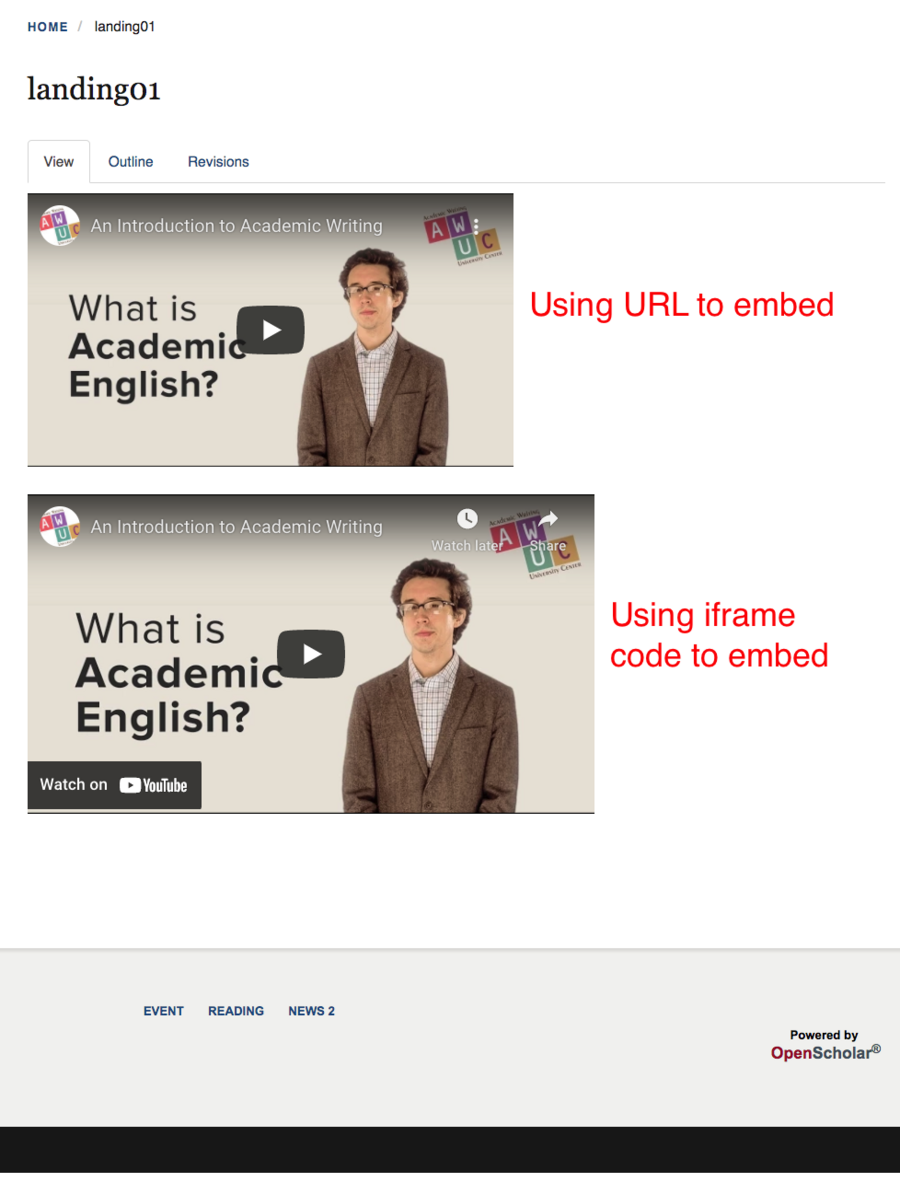 If the source is from one of the providers in the list, then you can use either the URL or the iframe code to embed the content. If the source is not in the list, then you can only use the iframe code.