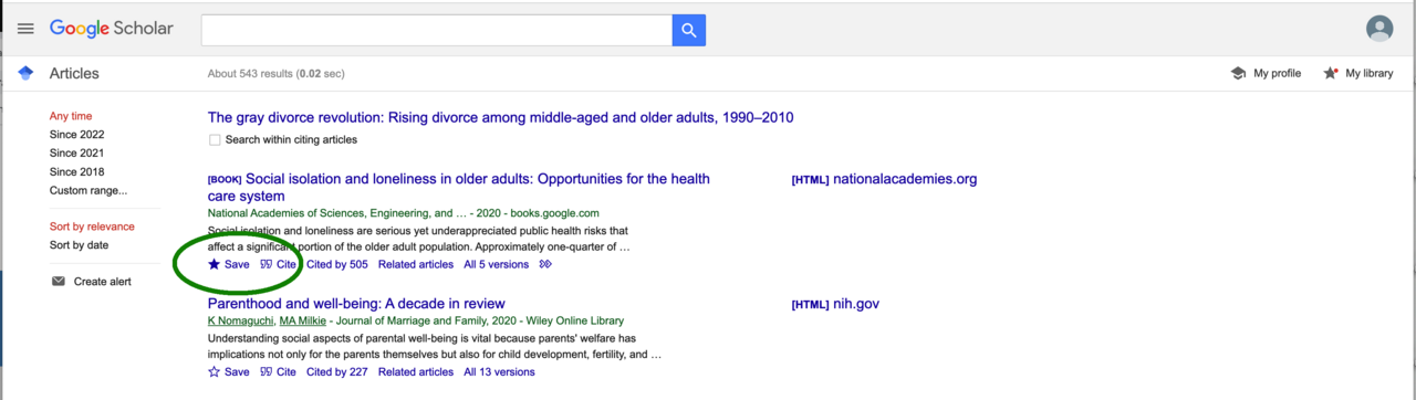Note: you can save multiple citations to a list. When you are ready to export all saved citation, go to step 4.