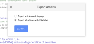 7. Select [Export all articles with this label] and Click EXPORT button