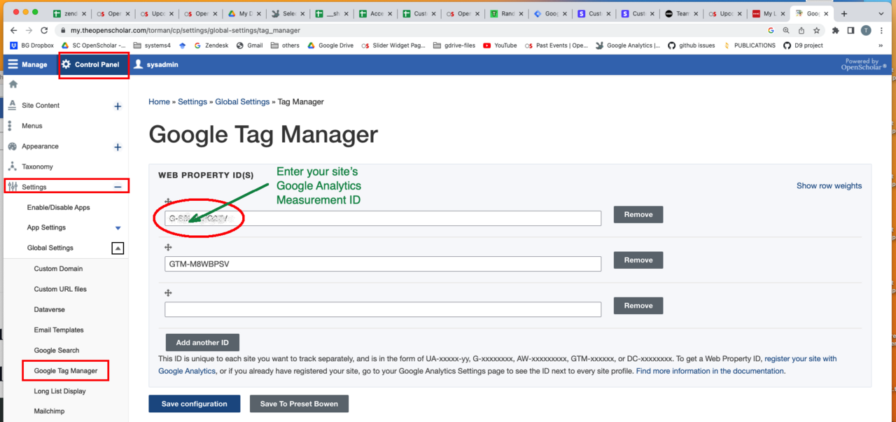 1. Go to your Openscholar site, navigate to your Settings area