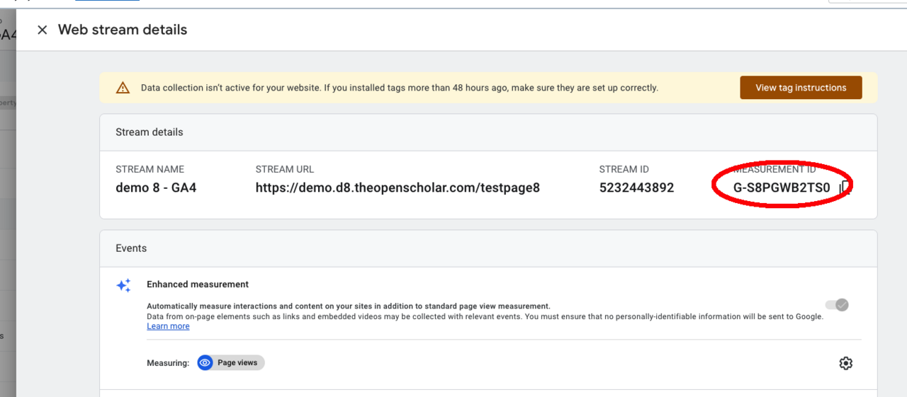Note: you should be able to find the measurement ID in Web stream details popup like this one below.