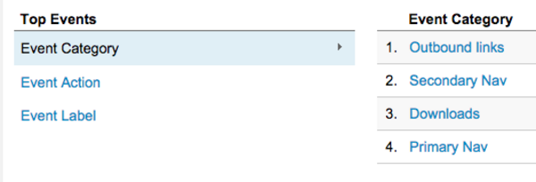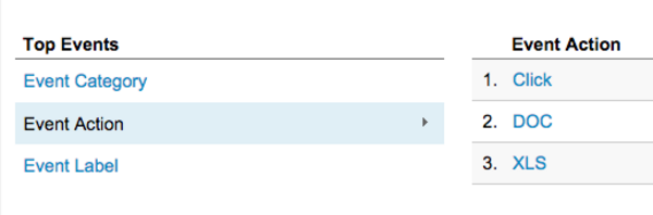 Event tracking is organized into three areas, Category, Action and Label: