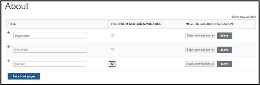 - Check the box next to any page you want to hide