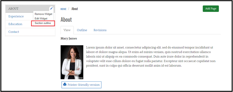 - Hover over your section navigation widget, click on the edit icon, and select Section outline.