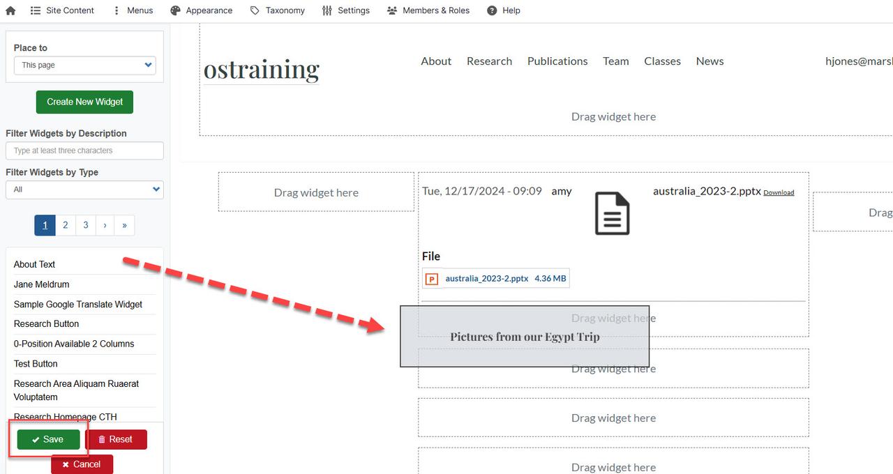 Drag the new widget onto the page.