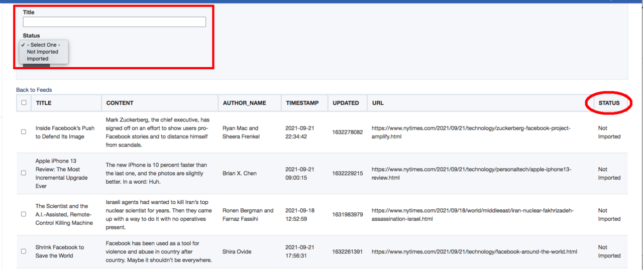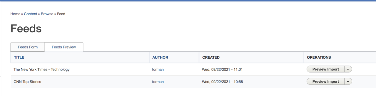 NOTE: You can manage existing imported content by clicking the Feeds Preview tab