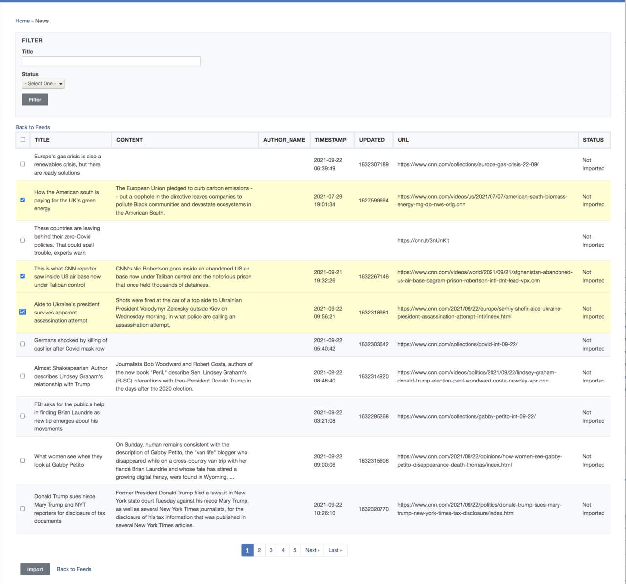 Select the news items that you want to include on your site. After clicking "Import" button, the news items will become posts on the site.