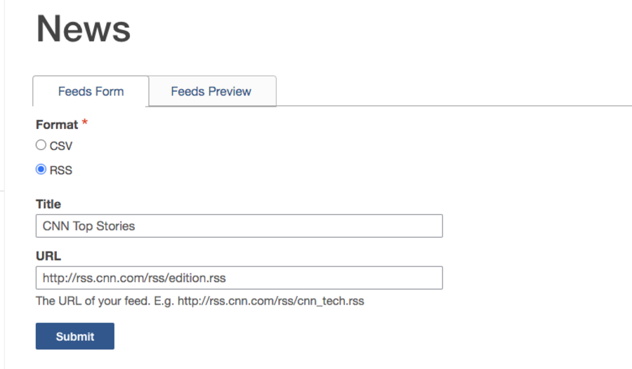 Choose the RSS option, and enter the Title and URL, then click "Submit".