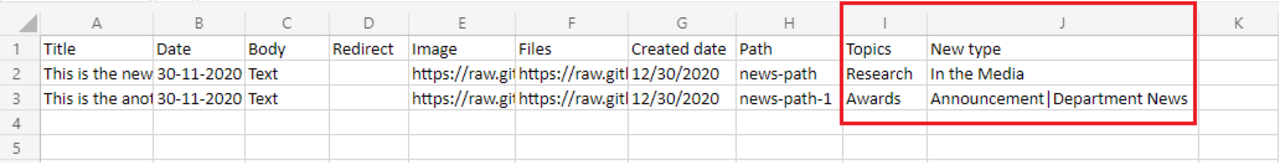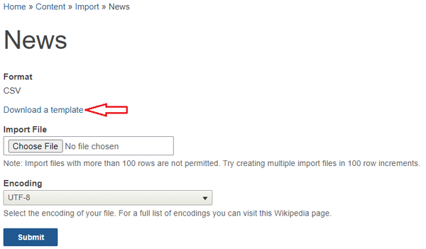 Site Content > Import > News