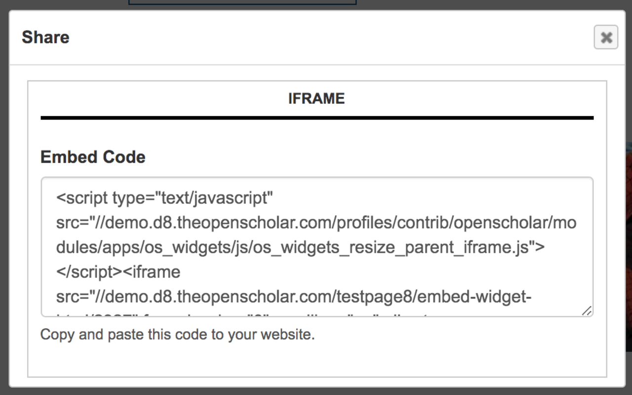 Just like in the List of Posts, you can embed this widget on other websites.Then you can copy and paste the Iframe script to your own web site.