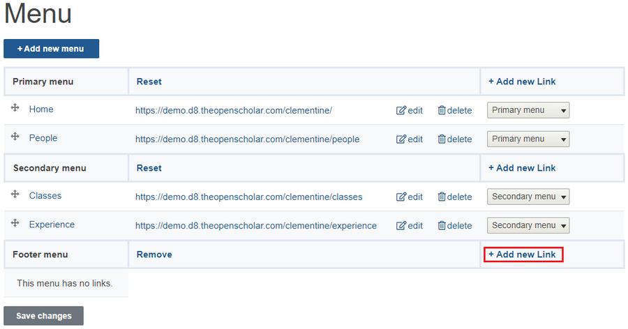 5. Create your menu links and Save