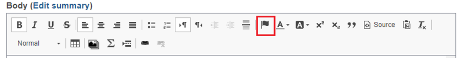 2. Go to the wysiwyg editor and select the anchor icon (depending on the browser you are using, this sometimes appears as a flag)