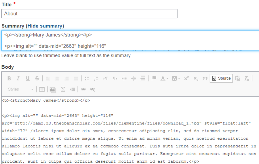 Example of the Text Editor / WYSIWYG