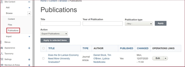 To navigate your publications better, follow these steps to add a menu item pointing to publication listing in primary menu :