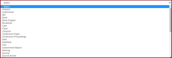 2. On the appearing page, select the Publication Type from the drop down lists.