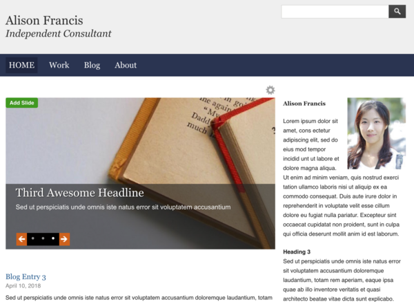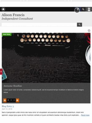 Below you will find three examples (desktop, tablet, handheld) depicting different browser sizes, all derived from the same theme.