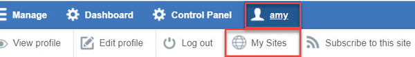 Click on the user menu>My Sites