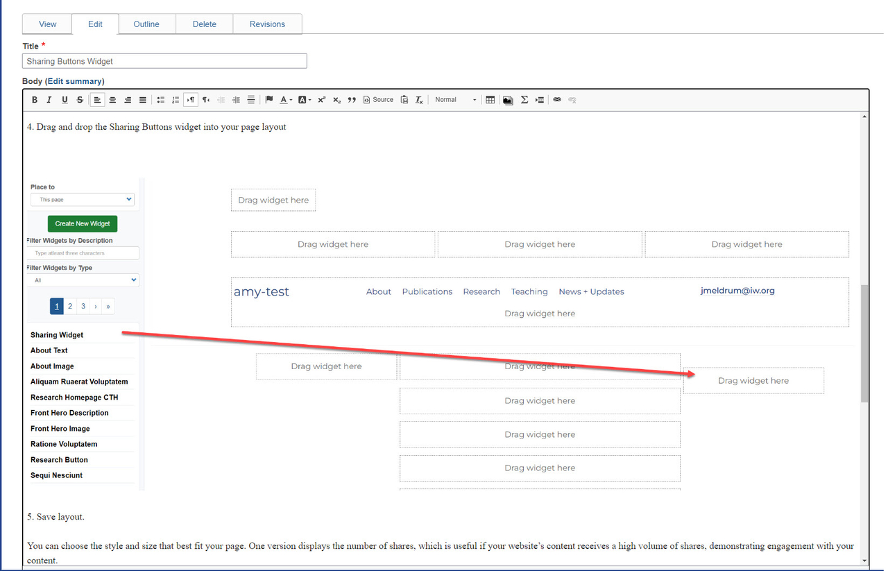 5. Drag and drop the Sharing Buttons widget into your page layout