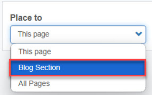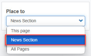 4. When you want visitors to share individual news or blog articles, be sure to select News Section or Blog Section from the Place to drop down located above the Create new widget button. This will allow visitors to share individual articles.