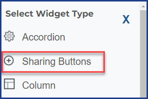 - Click on the Add New Widget button and select the Sharing Buttons Widget.
