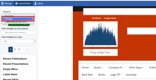 2. Select All Pages from Place to if you would like to have the site logo showing all pages in the site.