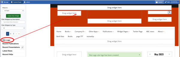7. Drag the newly created Site Logo widget from widget panel to header region
